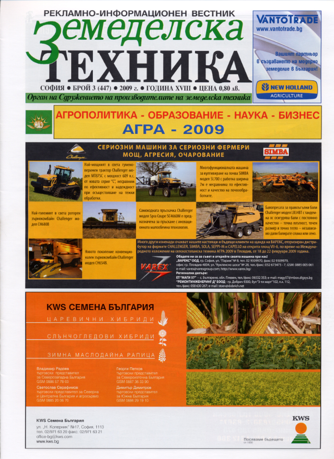 Брой 3 на в. „Земеделска техника” е посветен на АГРА – 2009 .