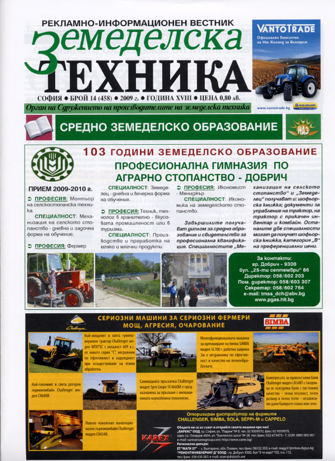 В статията „Училище с бъдеще” Миглена Бенова представя Професионална гимназия по аграрно стопанство – Добрич, която е третото земеделско училище, създадено в страната, и първото - за региона. Разказва за Земеделския музей, който е единственият в системата и включва музейна сбирка от земеделски машини и материали за училището. Девизът на гимназията е „Училище с бъдеще” и той се потвърждава от постигнатото.