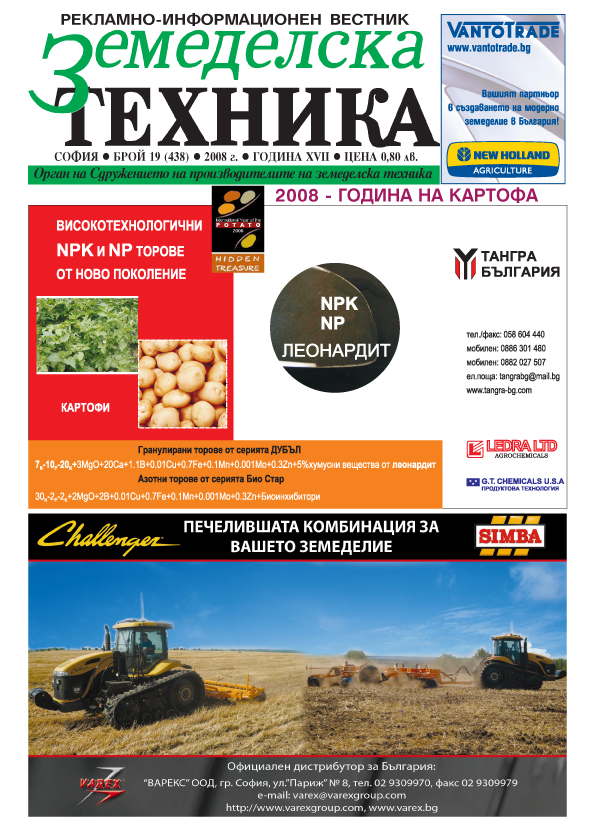 Основната тема на брой 19 на в. ”Земеделска техника” е “2008 - международна година на картофа”. Д-р Венцислав Тодоров, генерален директор на Националната служба за растителна защита, посочва кое наложи да се обърне такова внимание на тази култура, къде е мястото на България, каква е ролята на науката, бизнеса, държавните институции, както и на НСРЗ за постигане на съвременно и ефективно картофопроизводство.