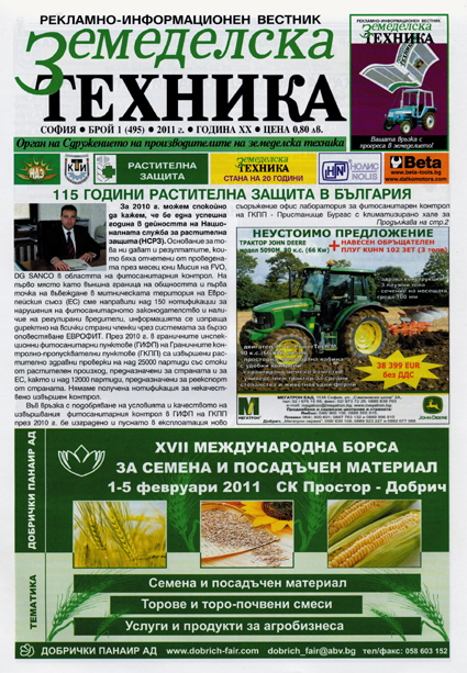 Темата на първия брой (495) на в. “Земеделска техника” за 2011 г. е Ден на растителнозащитника – 16 януари и 115 години растителна защита в България. Генералният директор на Национална служба за растителна защита Антон Величков информира за дейността на службата през 2010 г. и предстоящите задачи и предизвикателства през новата 2011-та година. Разглежда връзката между растителнозащитните машини, препарати и растителната защита в земеделието. Споделя за интеграцията на НСРЗ с науката и бизнеса, като свързващо звено.