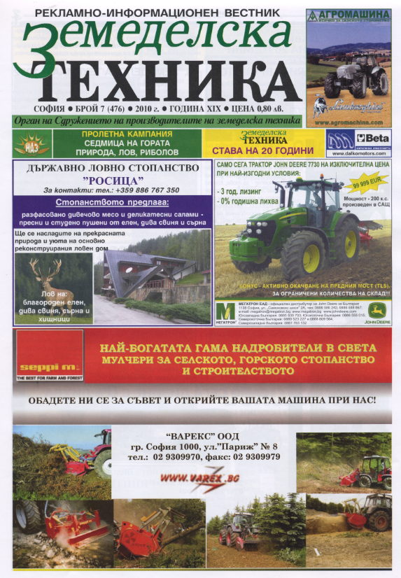 Публикувани са реклами на фирми предлагащи техника за селското и горско стопанство. Особено интересни са рекламите на Държавните ловни стопанства за ловен туризъм и почивка.