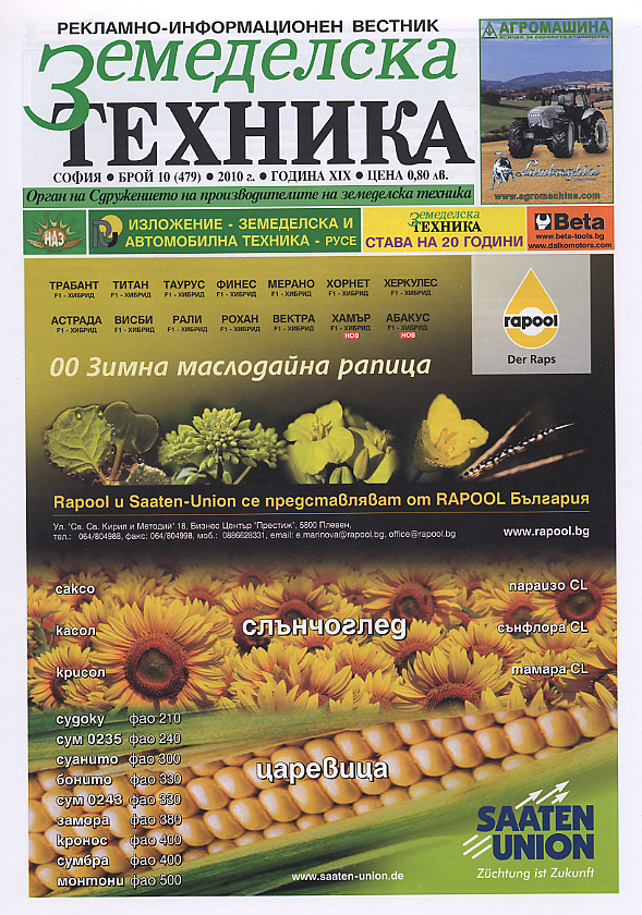 В рубриката «Земеделски пазар» САПИ дава кратка информация за цени към 14.04.2010 г. на зърнени култури, мляко и млечни продукти. В «На пазара на земеделска техника» са поместени земеделски машини, трактори, нови и втора употреба с техните цени. В «малките обяви» има предложения за продажба на машини, резервни части и др.