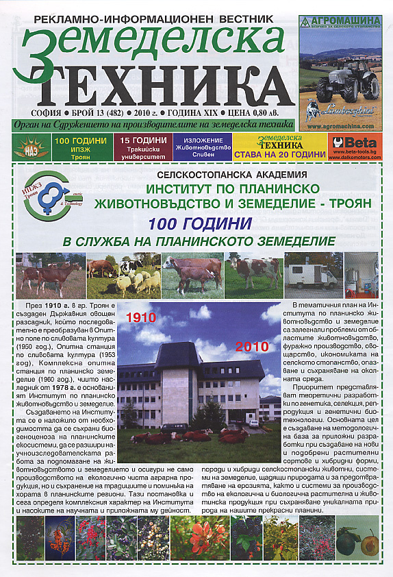 Основните теми на брой13 на в. „Земеделска техника” са: Изложение по животновъдство в гр. Сливен; 100 години Институт по планинско земеделие и животновъдство,Троян; 15 години Тракийски университет; Земеделска техника става на 20 години.