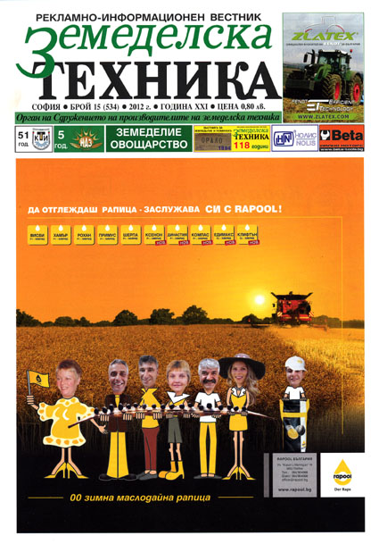 Темата на петнадесети брой 15/534/ 2012 г. на в. „Земеделска техника” е „Земеделие и овощарство”.