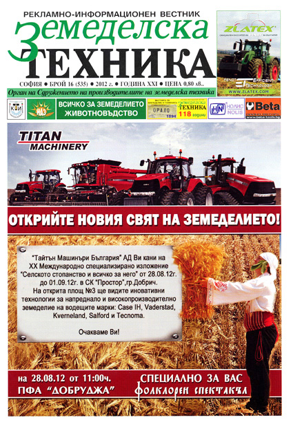 Темата на шестнадесети брой /535 / 2012 г. на в. „Земеделска техника”е „Всичко за земеделието. Животновъдство”.