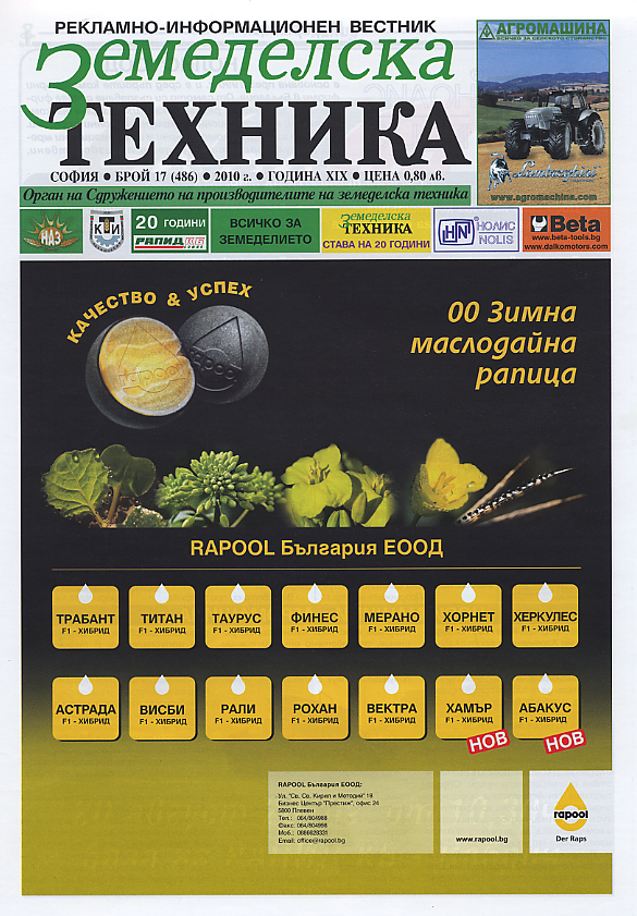 Публикувани са реклами на водещи фирми предлагащи продукти за земеделието.