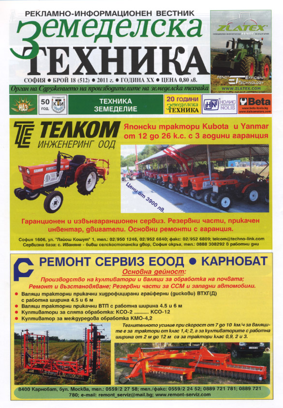 Публикувани са реклами на водещи фирми предлагащи машини, технологии, и продукти за земеделието.
