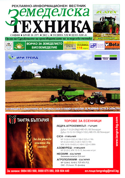 Централна тема на осемнадесети брой /537/ 2012 г. на в. „Земеделска техника” е „Всичко за земеделието - Биоземеделие”.