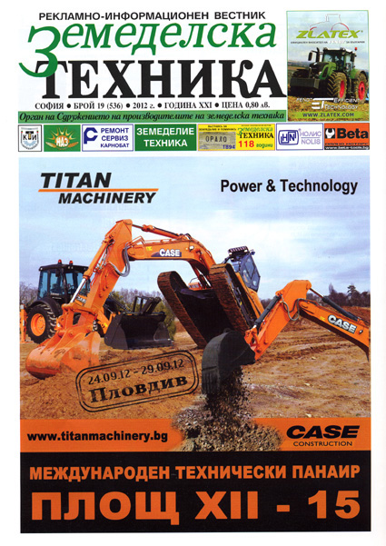 Темите на деветнадесети брой /538/ 2012 г. на в. „Земеделска техника” е „Земеделие и Техника”.