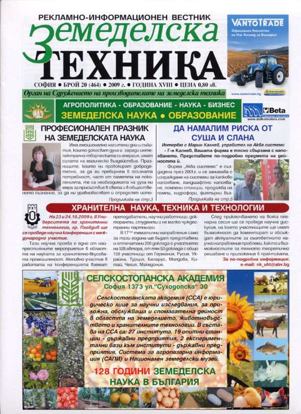 Темата на брой 20 на в. „Земеделска техника” е „Агрополитика – образование – наука – бизнес”.