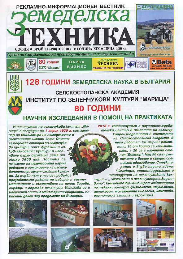 Основните теми на брой 21 са: 80 години Институт по зеленчукови култури “Марица”, Пловдив; Наука и бизнес; Вестник „Земеделска техника” става на 20 години.