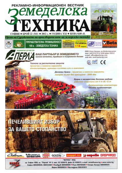 В рубриката „Земеделска техника” са поместени таблици и справка за регистрираните нови машини от Контролно-техническата инспекция за периода 01.01.2012 – 30.09.2012 г.