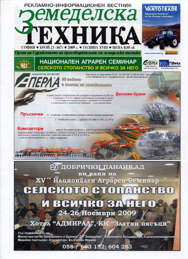 Темата на брой 23 на в. „Земеделска техника” е Националният аграрен семинар „Селското стопанство и всичко за него”, организиран от Добричкия панаир със съдействието на Министерството на земеделието и храните, ДФ „Земеделие” и Националната асоциация на зърнопроизводителите.