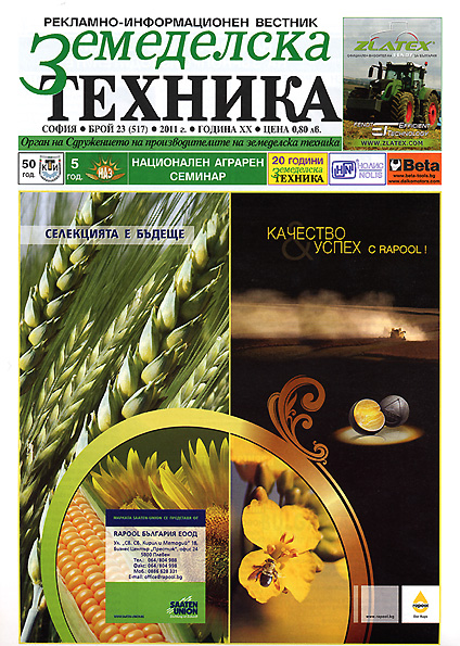 на вестник „Земеделска техника” са: 5 години НАЗ; Национален аграрен семинар -