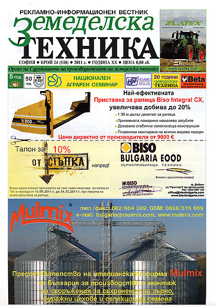 Публикувани са реклами на водещи фирми предлагащи машини, технологии, и продукти за земеделието и за животновъдството.