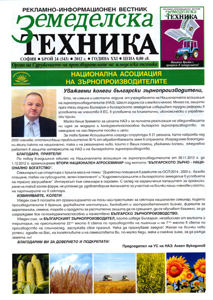 Темата на двадесет и четвърти брой /543/ 2012 г. на в. „Земеделска техника” е ”Национална асоциация на зърнопроизводителите”.
